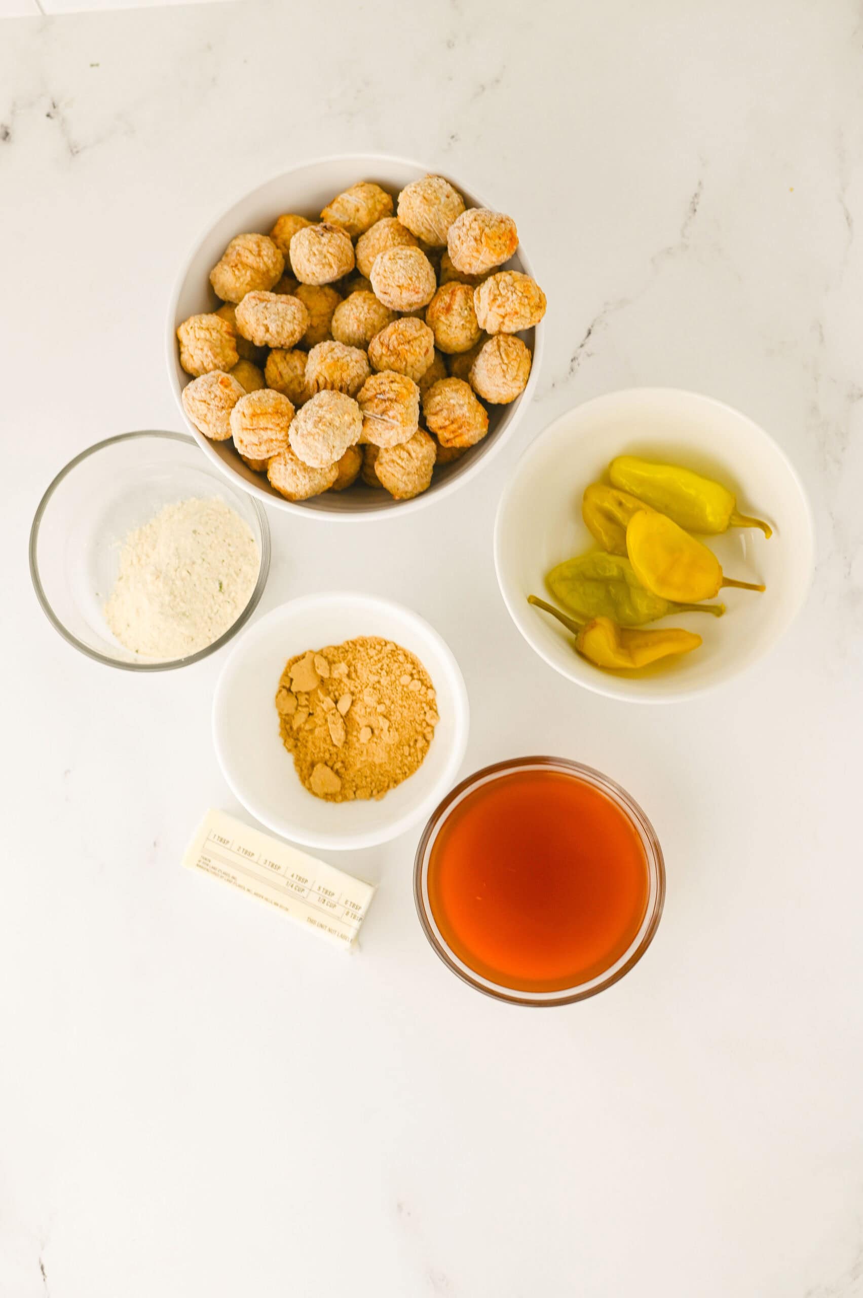 Step 3: Add the pepperoncini peppers, then cut the butter into pats and place them around the meatballs. This melts down into a rich, flavorful sauce.