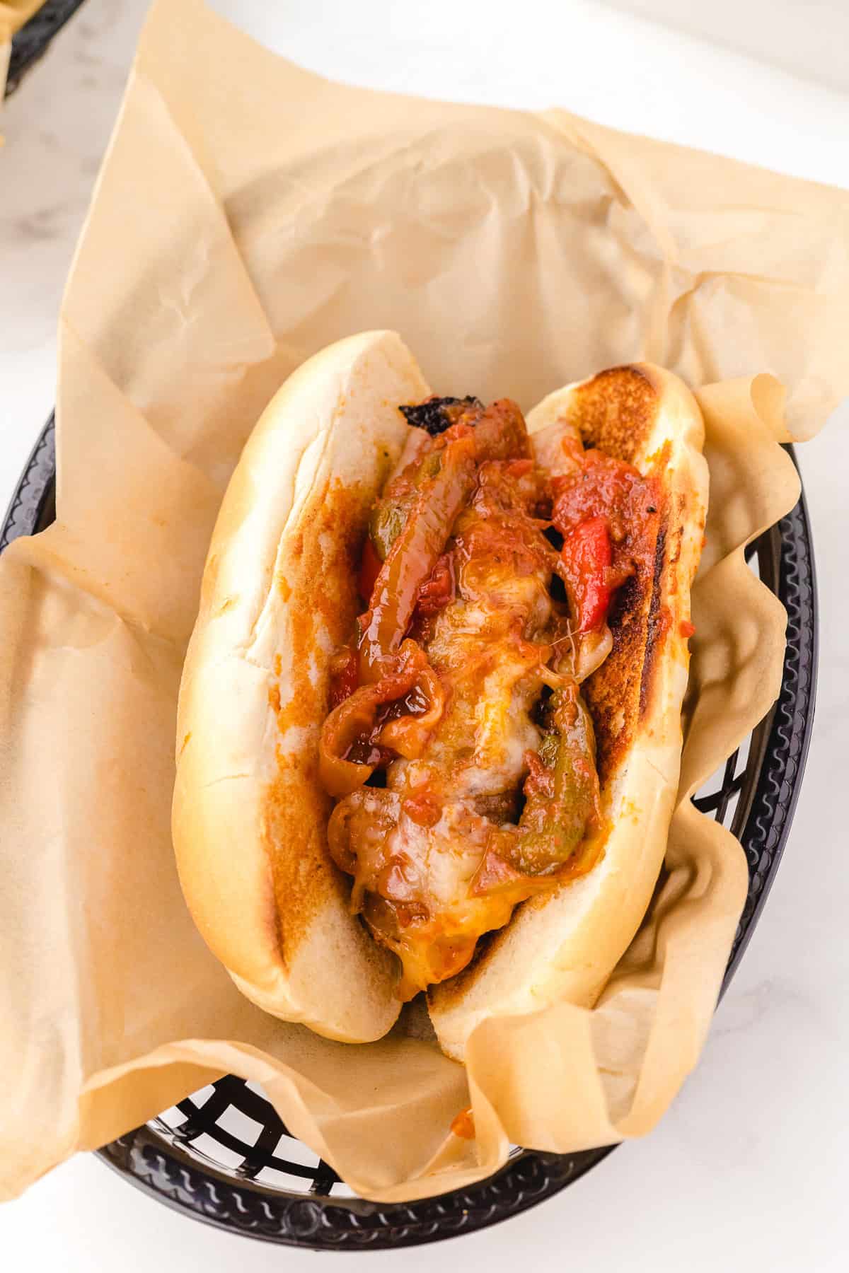 Store leftovers in an airtight container for up to 3 days. Reheat in a skillet or microwave until hot. Freeze the sausage and peppers without the cheese for best texture, then add cheese after reheating.
