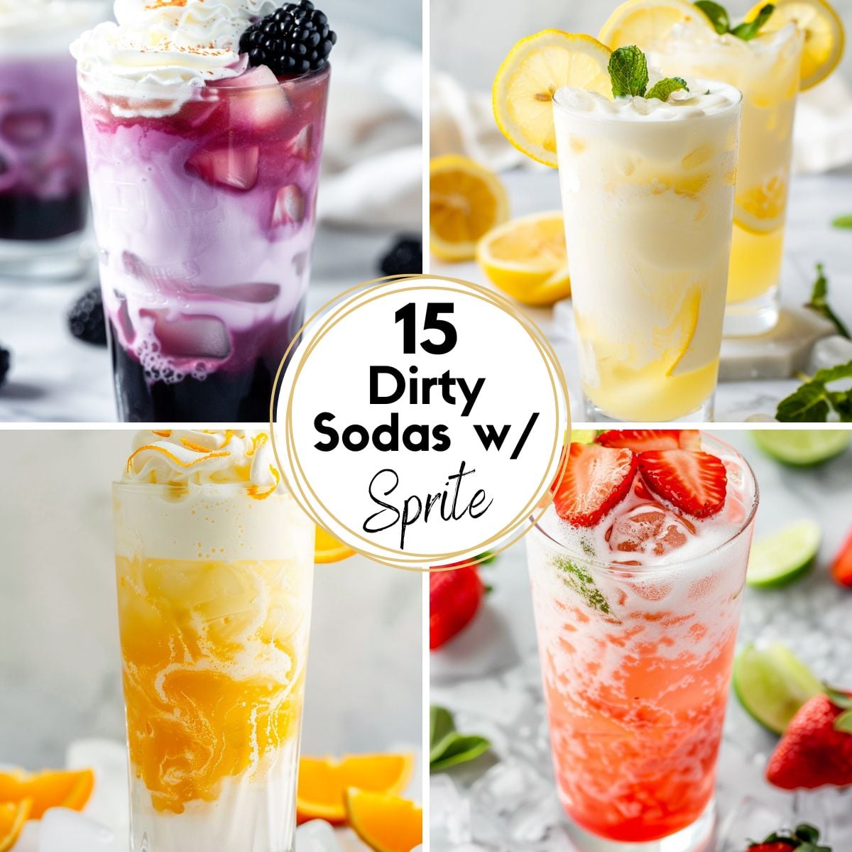 These easy Sprite variations are some of my favorites because they're light, refreshing, and work with pretty much any flavor combo. All you need is a simple base of Sprite, flavored syrup (or juice), and coffee creamer, then you can mix and match to create endless variations.