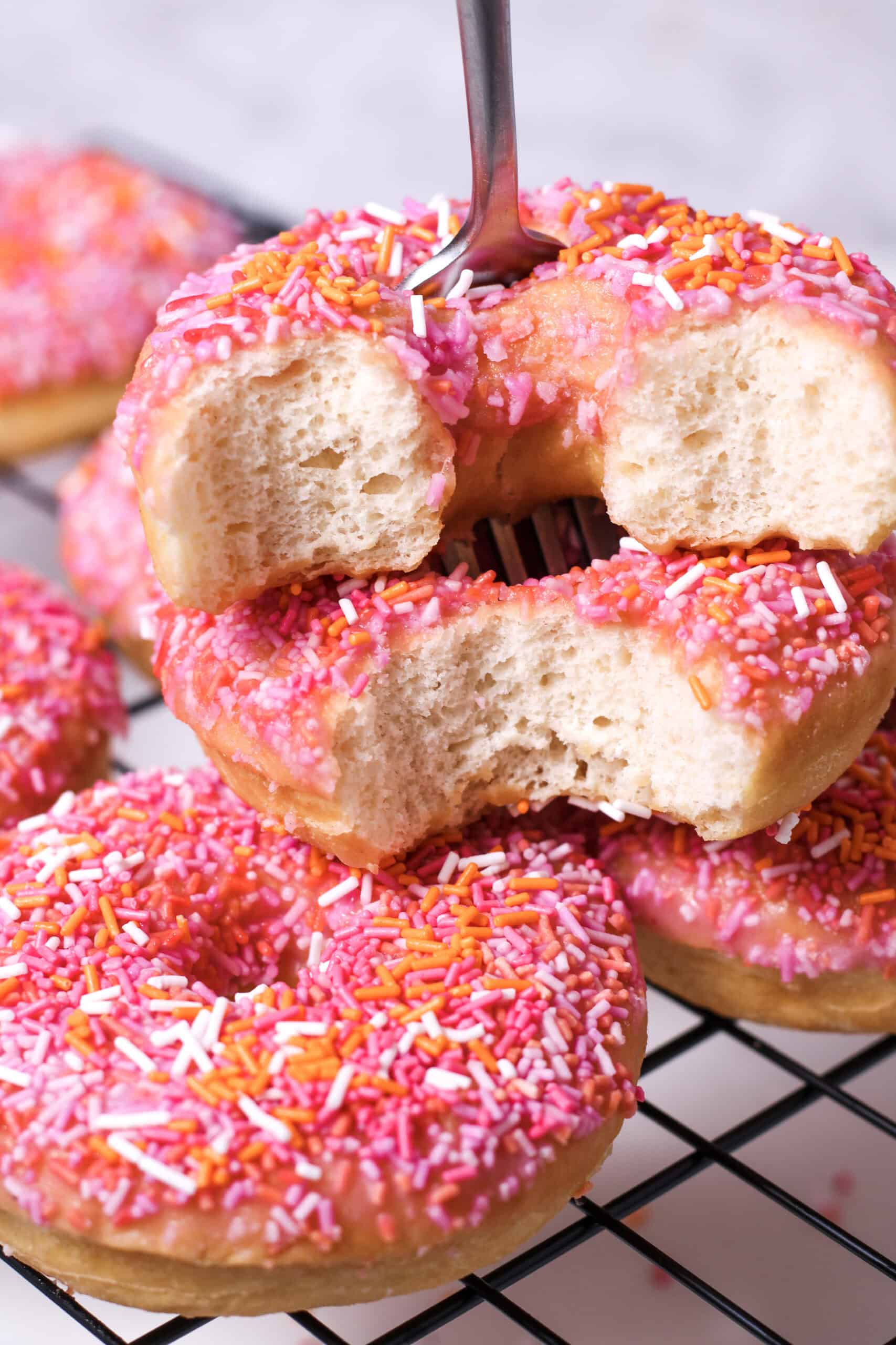 These easy homemade doughnuts are soft, fluffy, and lightly sweet with a simple pink glaze that makes them perfect for Valentine's Day or any cozy baking moment. Made with yeast and finished with fun sprinkles, they're great for beginners and feel extra special without being complicated. Whether you're baking for a holiday, brunch, or just because, these doughnuts are a total mood.