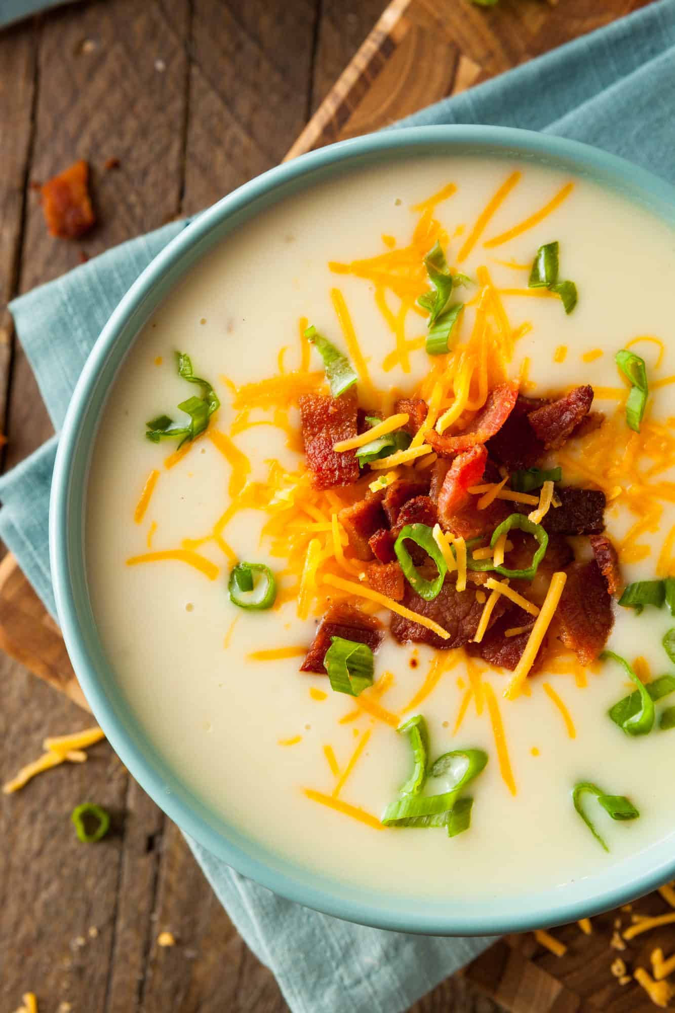 - You can make this soup rich (with heavy cream + cheddar) or a little lighter with half-and-half.