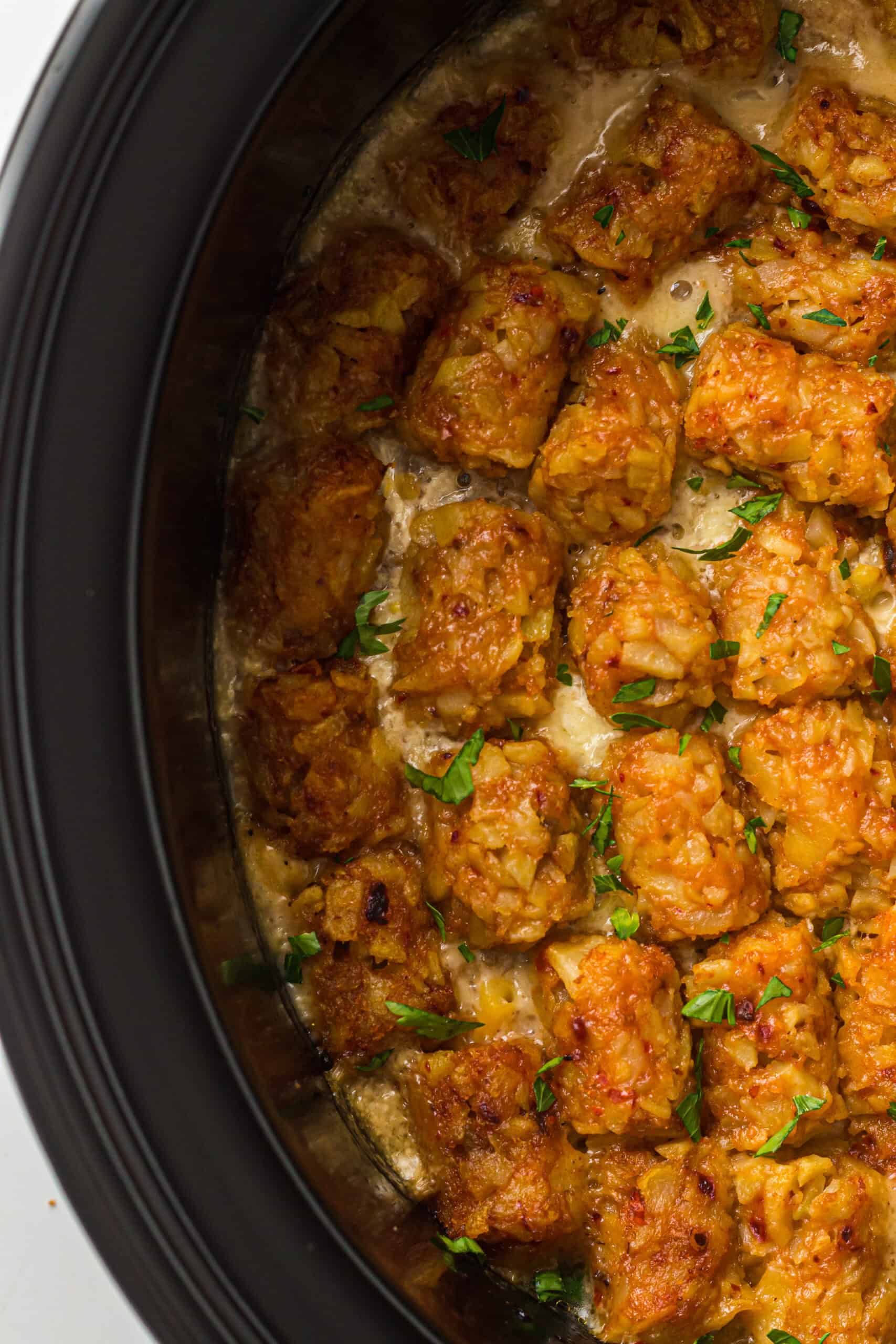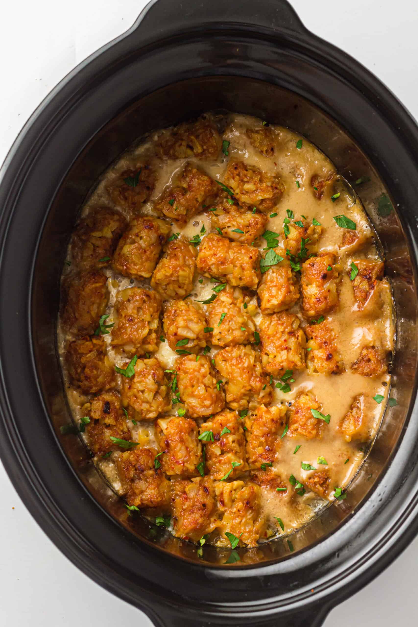 Store leftovers in an airtight container in the fridge for up to 4 days. Reheat in the microwave or oven until warm. You can also freeze the casserole for up to 2 months. If freezing before cooking, add tater tots right before slow cooking.