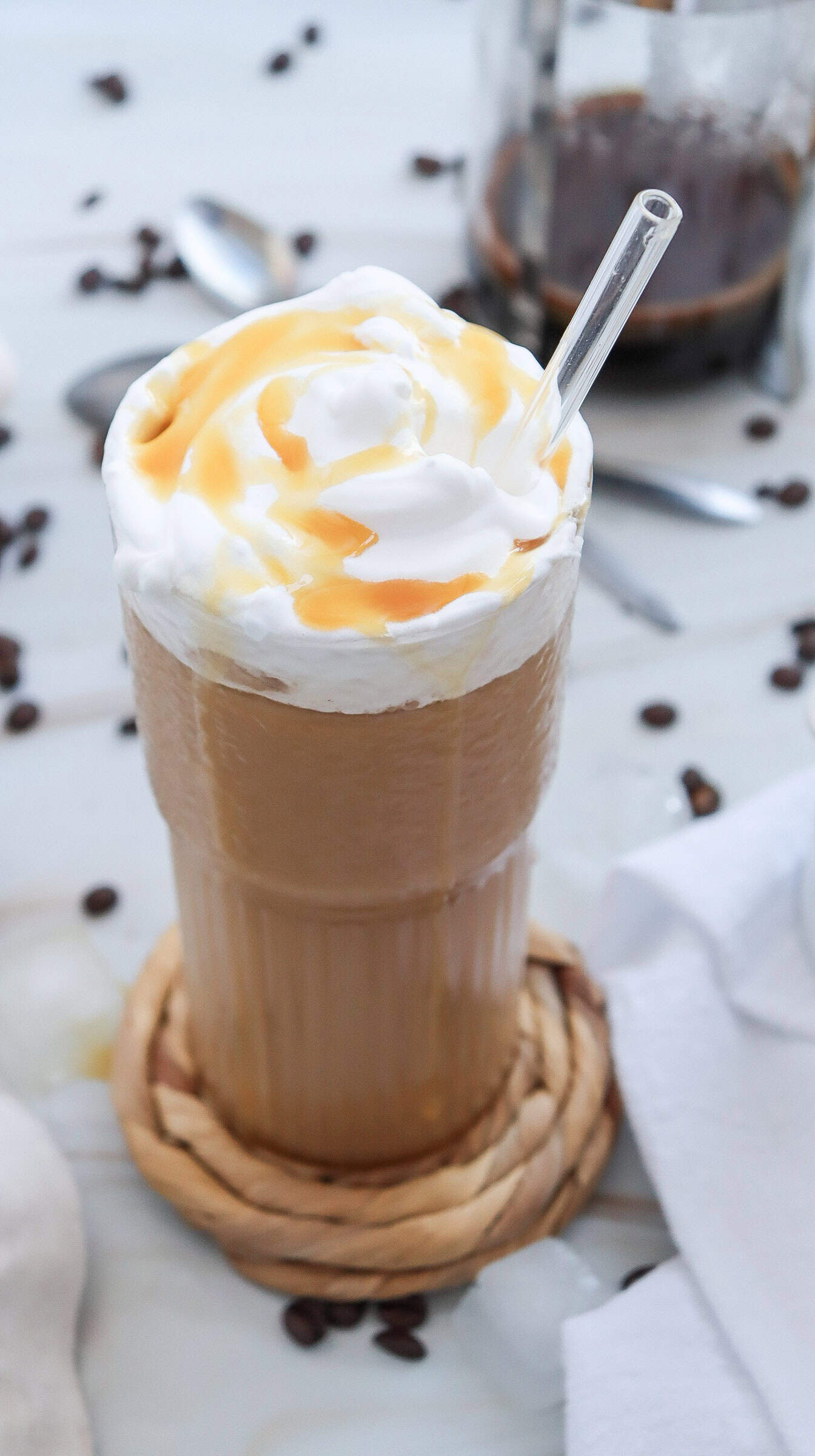 - Add the caramel while the coffee is warm for the smoothest mix.