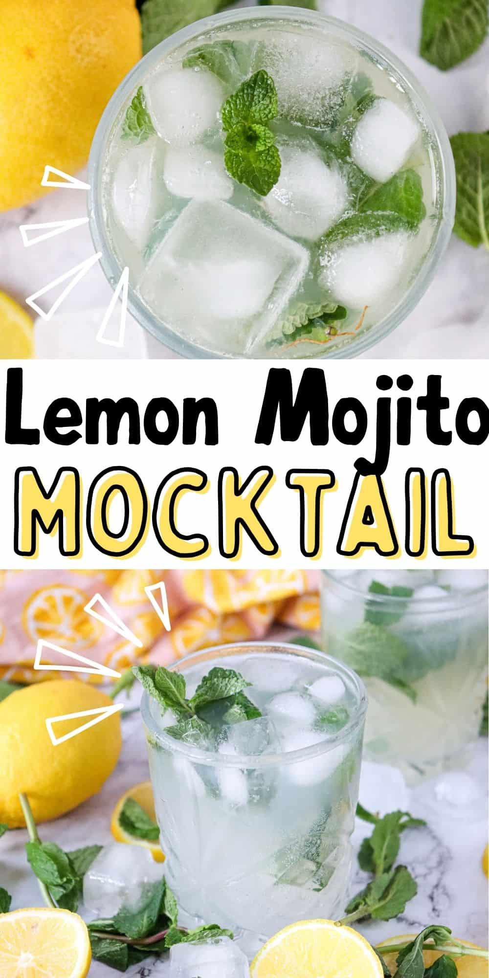 A lemon mojito mocktail is a non alcoholic drink made with lemon juice, mint, sugar, and sparkling water for a refreshing drink.