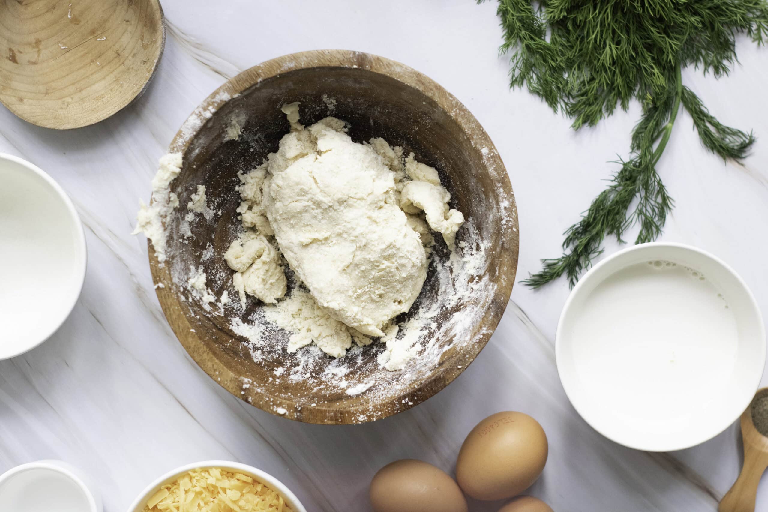 - Water: Ice cold water helps the dough hold together without overmixing.