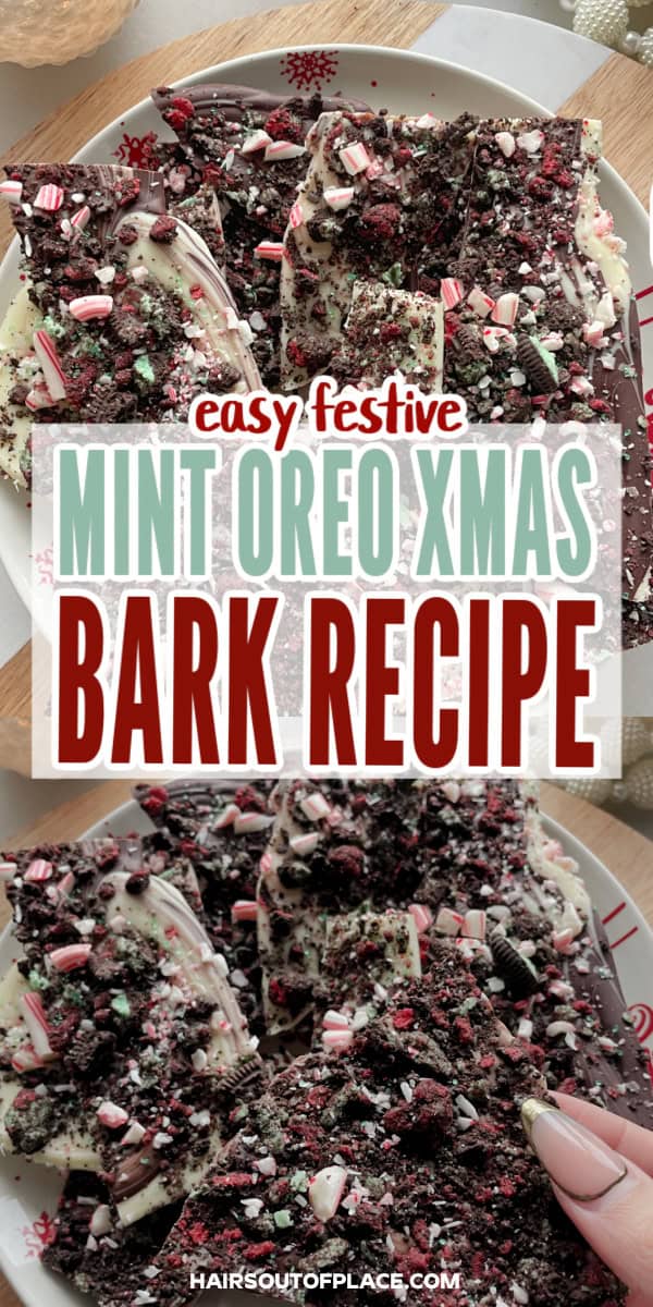 One of my favorite holiday recipes is mint Oreo Christmas bark. Makes for the perfect mix of creamy chocolate, crunchy cookies, and cool peppermint, and it looks insanely cute for how easy it is.
