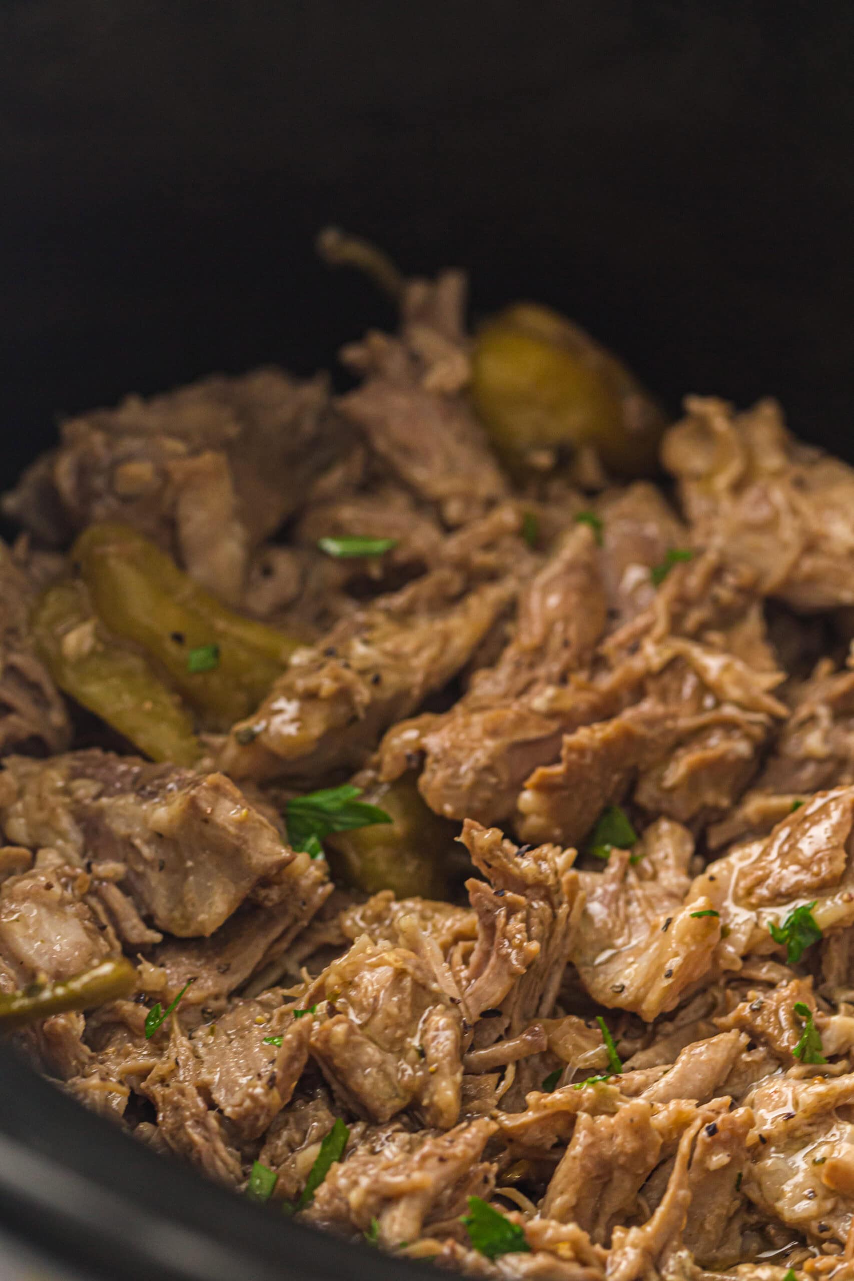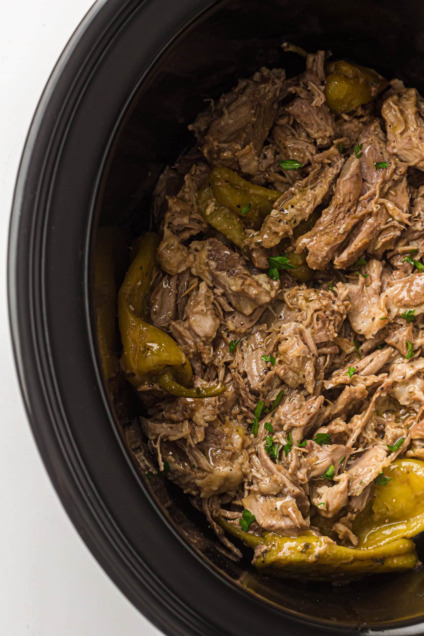 I love recipes like this because they're so simple but taste like you spent all day in the kitchen. Plus the pepperoncini vibe makes it feel kind of fancy without adding any real steps. I also love that it turns into the juiciest shredded pork for sandwiches, bowls, or just eating out of the pot if we're being honest.