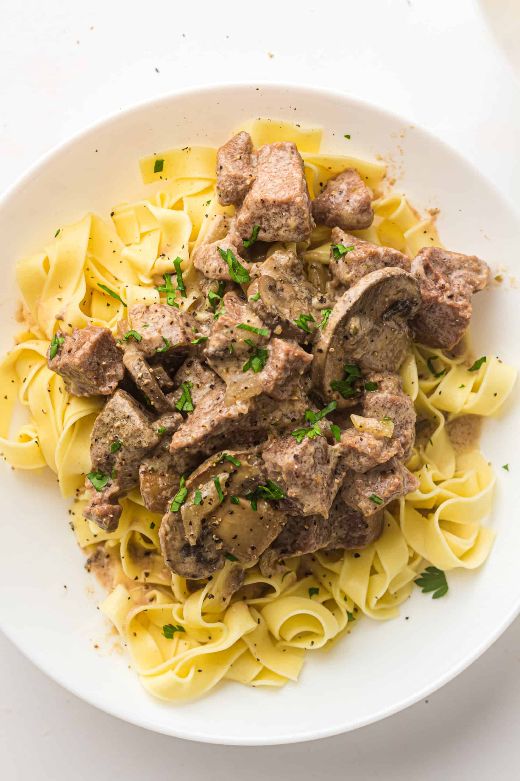 Store leftovers (noodles separate!) in airtight containers for up to four days. Reheat gently in the microwave or on the stovetop with a splash of broth or cream to loosen. You can freeze the beef mixture without noodles for up to two months.