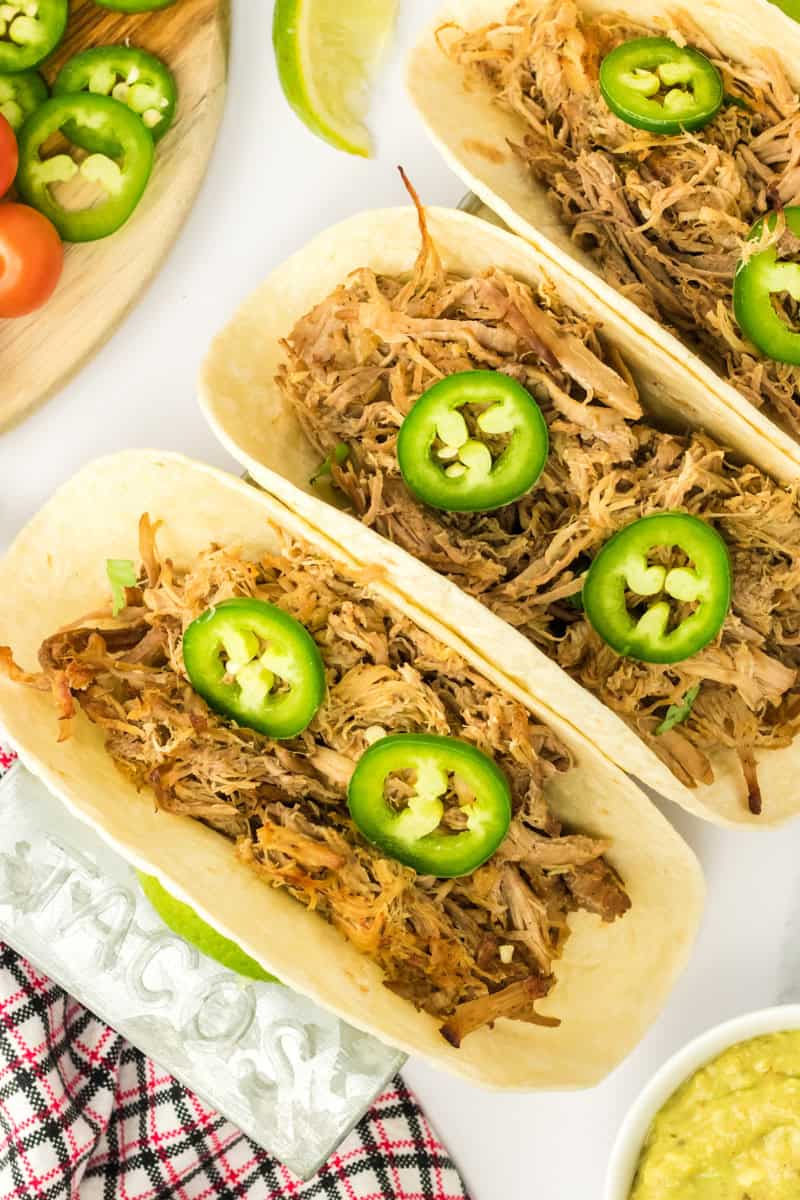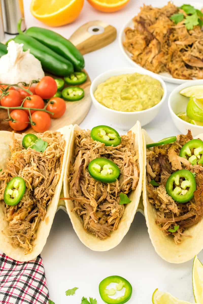 Serve these carnitas in warm corn or flour tortillas with cilantro, avocado, tomatoes, and a squeeze of lime. They're also great in burrito bowls, over rice, or piled onto nachos for an easy crowd friendly meal.