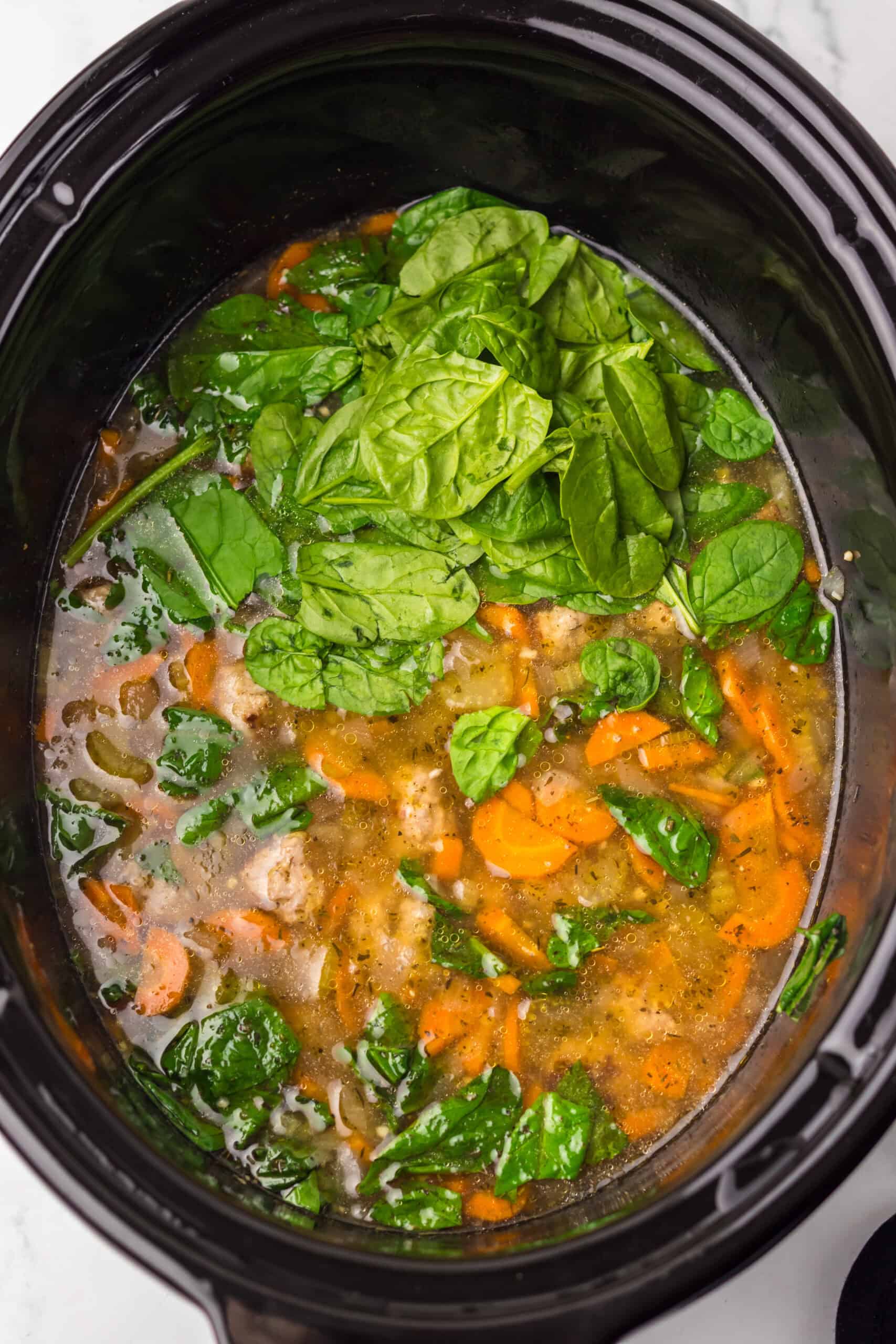 - Stir in the spinach right before serving for the prettiest color and freshest taste.