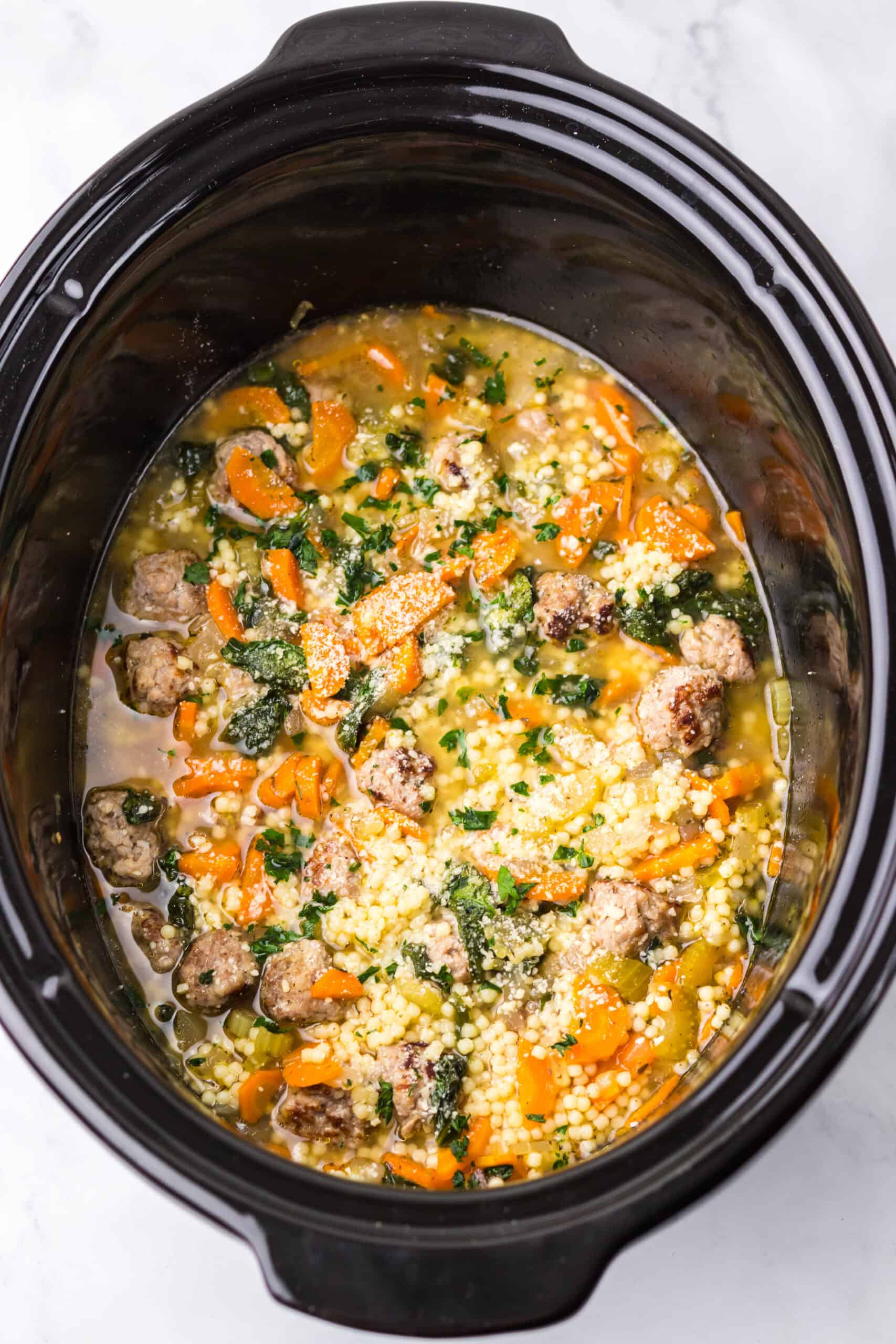 Cover and cook on LOW for 5-6 hours or HIGH for 3-4 hours, until the vegetables are tender and meatballs are fully cooked.