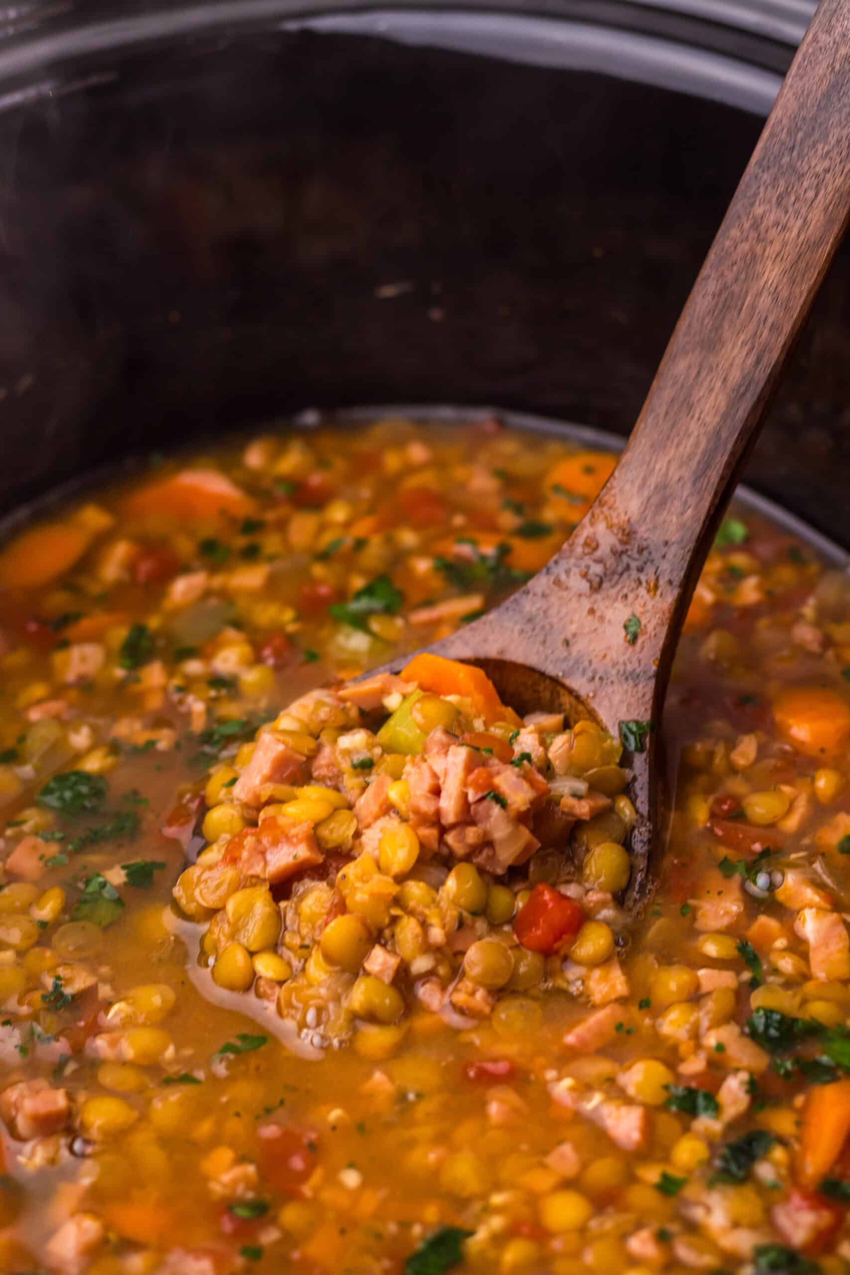 Brown or green lentils hold their shape well during slow cooking and give the soup the best texture.