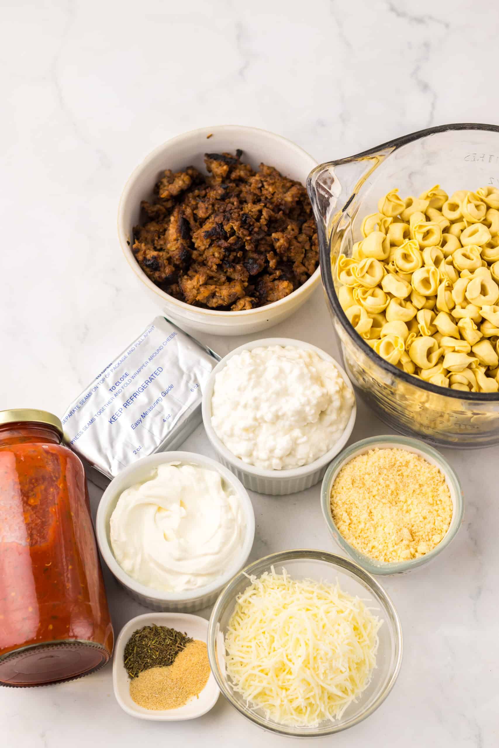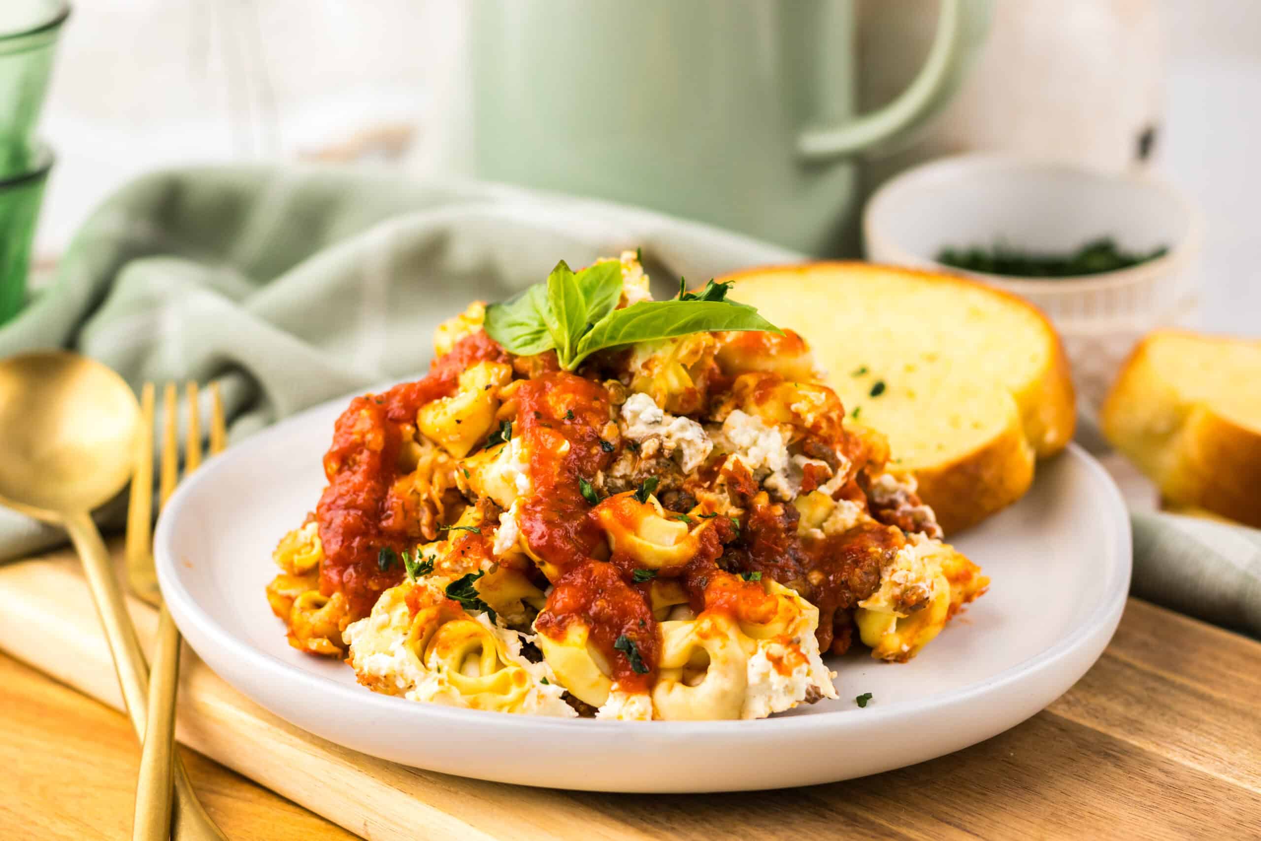- Layer, do not stir: Layering the tortellini, creamy cheese mix, meat, and sauce keeps the pasta tender and the cheese extra creamy.