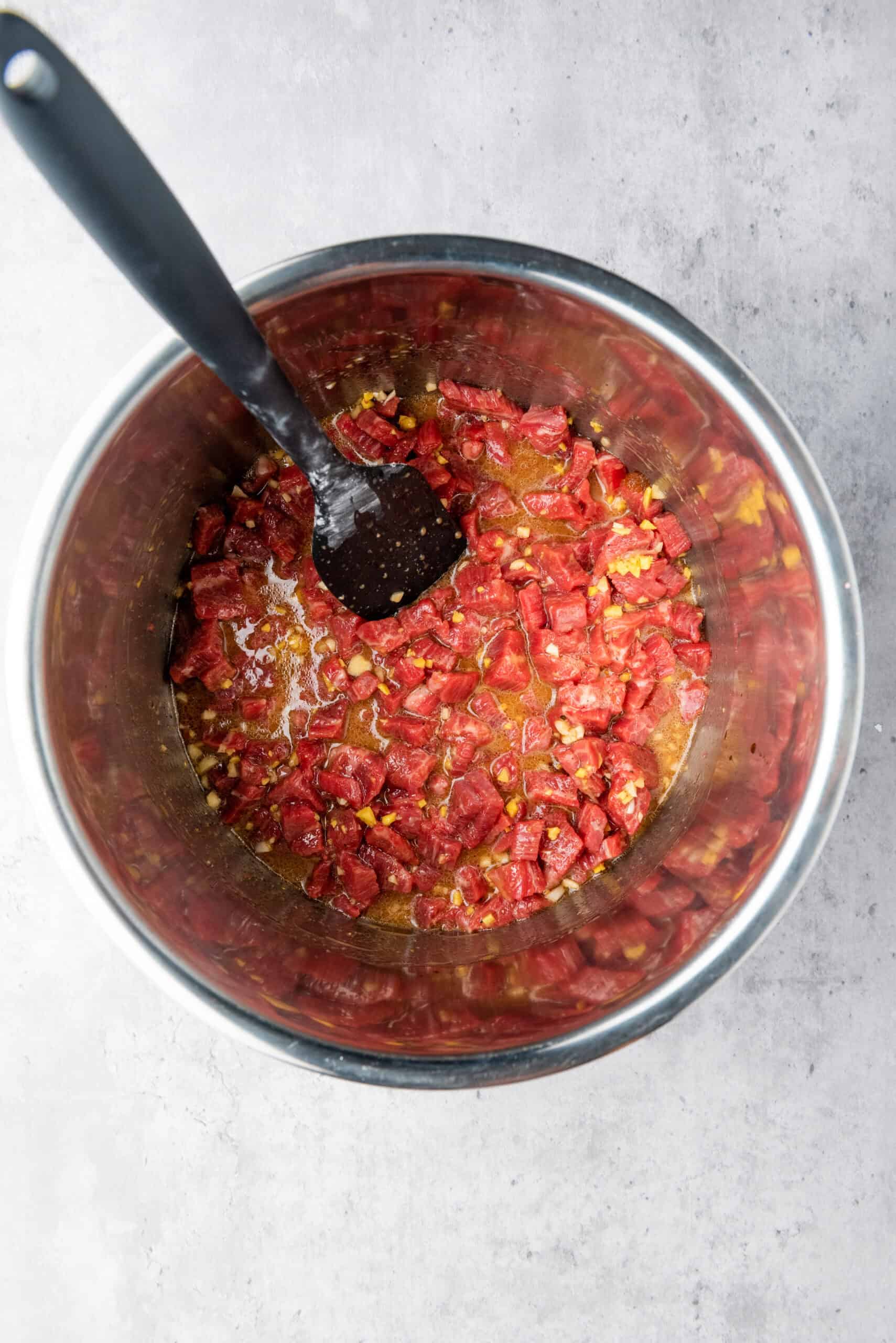 Step 3: Add the garlic, ginger, brown sugar, sesame oil, soy sauce, and water. Stir gently to combine.