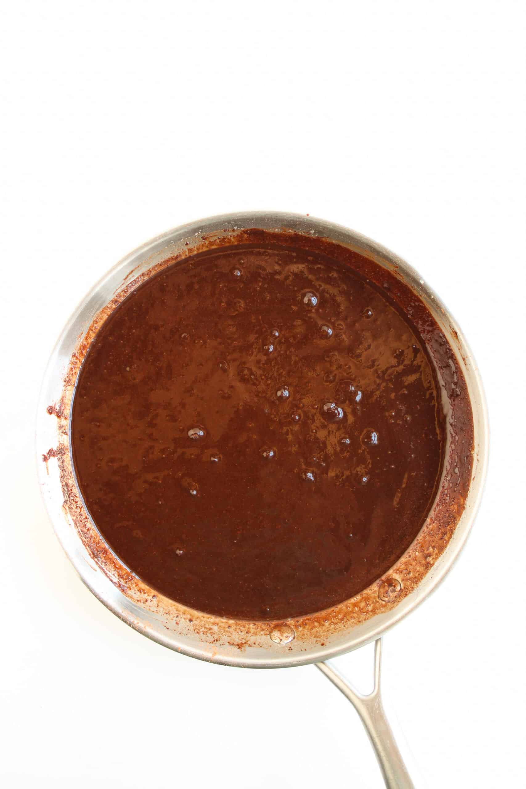 In a medium skillet, melt the butter and sugar together over medium heat, whisking until smooth and glossy.
