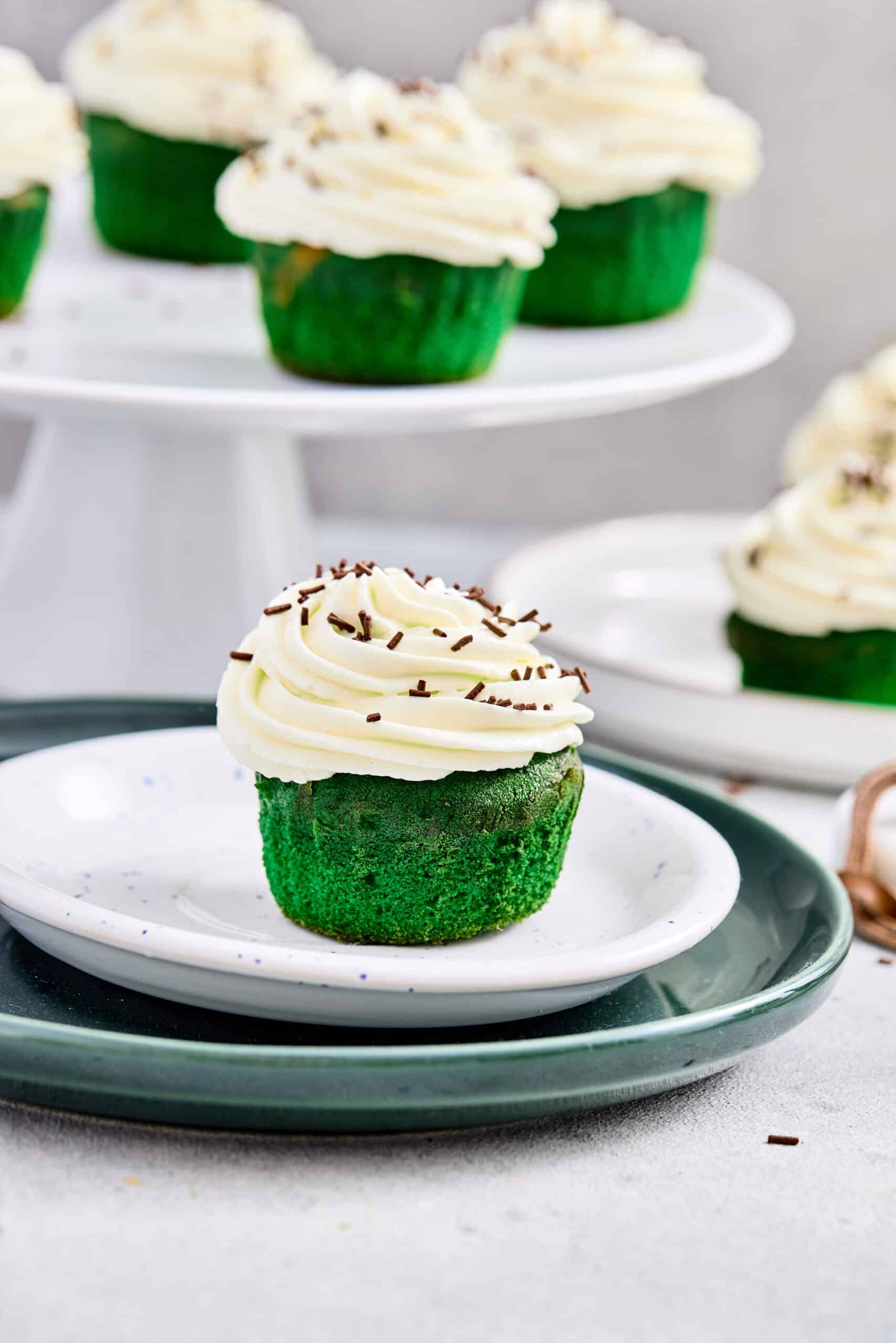 These chocolate cupcakes topped with swirled rainbow frosting and chocolate gold coins are pure magic. They're festive, colorful, and the rainbow frosting technique is easier than it looks once you get the hang of it. Divide your buttercream into separate bowls and tint each one a different color, use a piping bag with a large star tip and stripe the colors inside before piping, or skip the rainbow and just do green frosting if you want to keep things simple and on-theme.