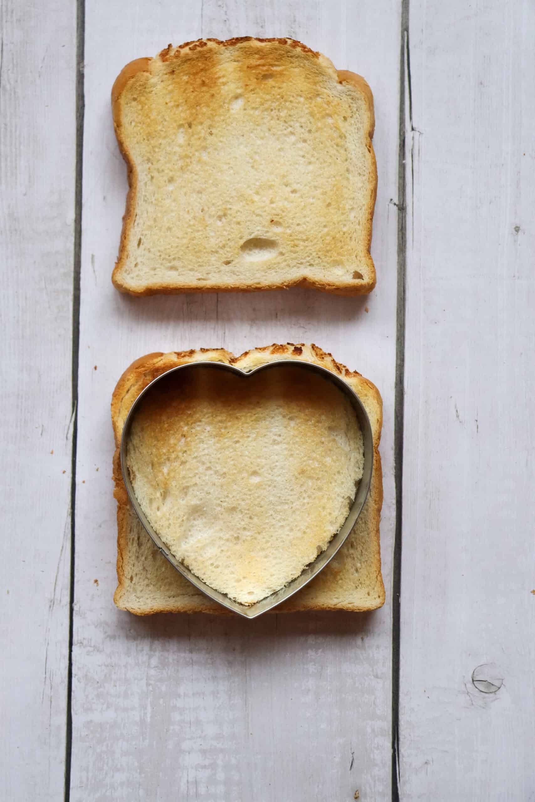 Cut each slice of toast into a heart shape using a cookie cutter.