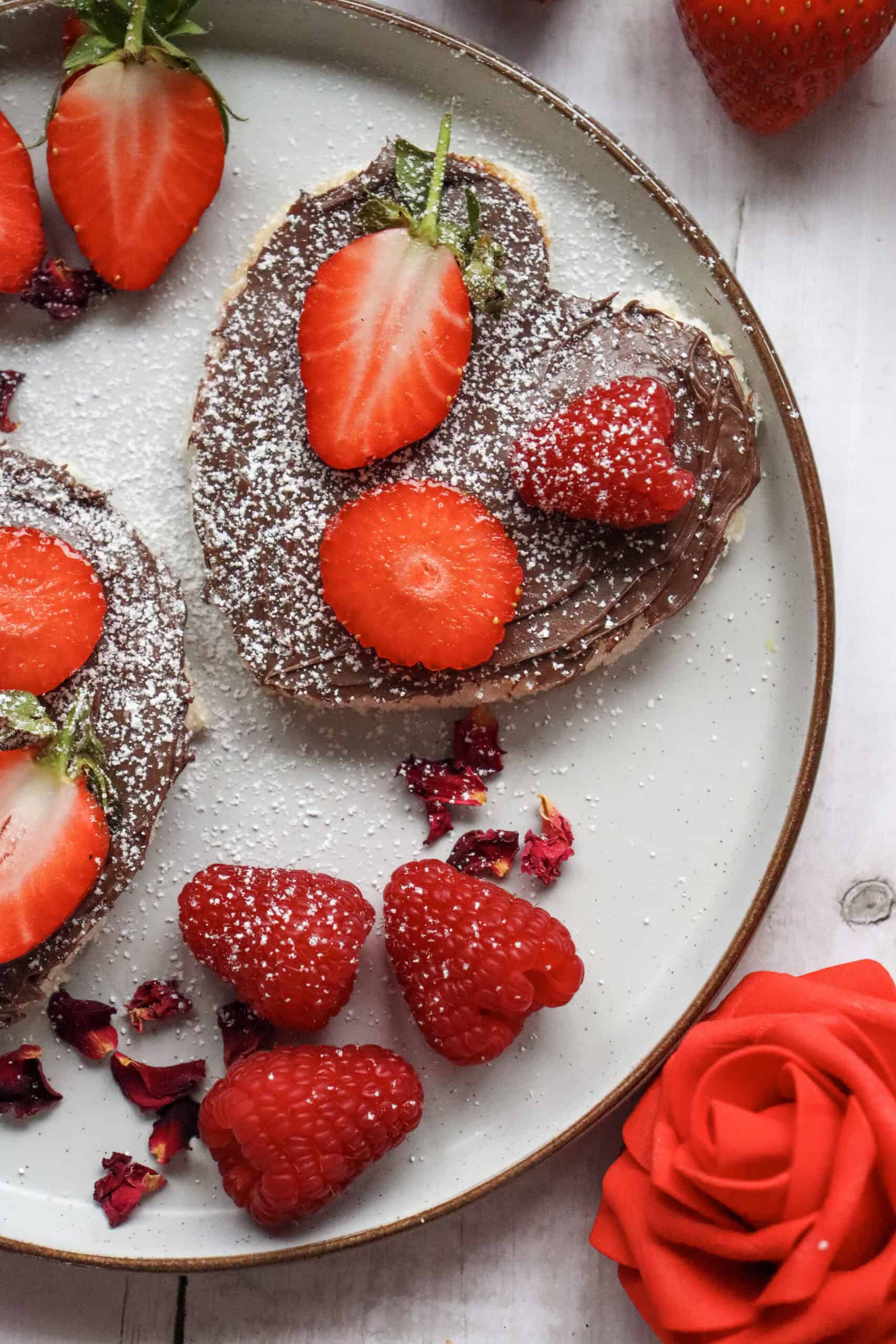I love making these for Valentine's Day mornings or when I want a simple breakfast that's fun and special. It's basically toast and Nutella, but the heart shape and berries make it feel cute.